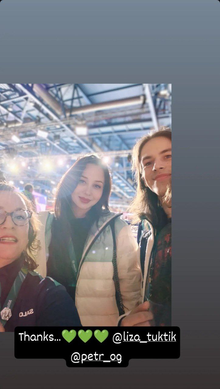 Лиза Туктамышева и Петя Гуменник вчера с волонтёршей на ПП пар 🩵
