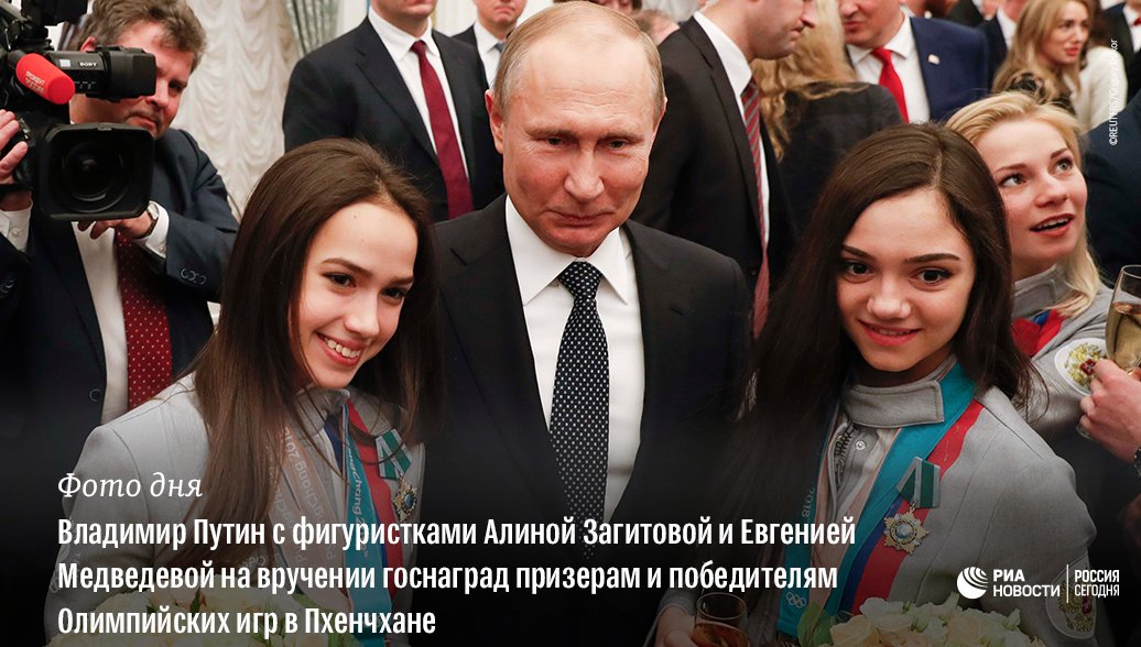 Наталья Забияко и Владимир Путин на вручении государственных наград чемпионам и призерам ОИ